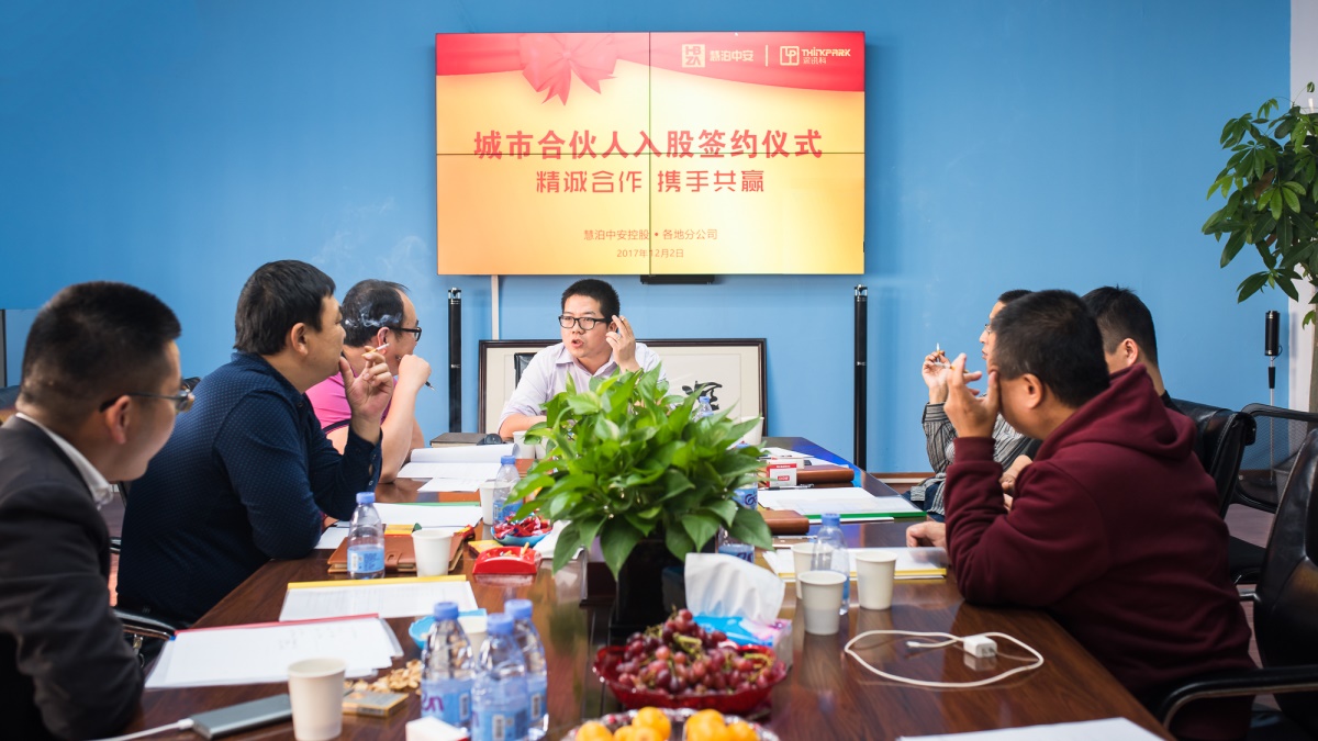 - 2017年12月2日,慧泊中安控股城市合伙人入股簽約儀式正式啟動(dòng),來(lái)自云南、新疆、重慶、成都、貴州、江西、福建等地的城市合伙人參加了本次簽約儀式,共商合作事宜,共同整合資源推動(dòng)市場(chǎng)發(fā)展,共享發(fā)展未來(lái)。會(huì)上,各城市合伙人結(jié)合各自區(qū)域市場(chǎng)情況闡述了開(kāi)展智慧云停車(chē)項(xiàng)目的運(yùn)營(yíng)思路,就各合作模式達(dá)成一致,簽約入股,并合影留念。