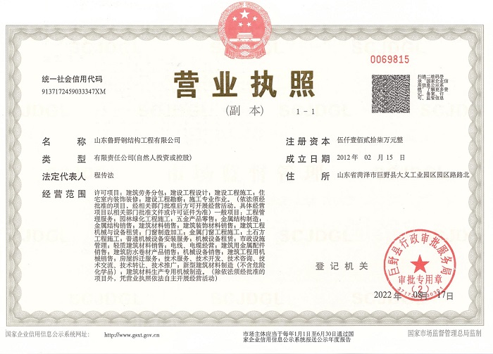 公司現有員工150人,本科、專科人員20人,包括科研人員、高級工程師、各類技術人員多人,設立5家安裝項目部。建立了完善的設計、科研、生產、安裝施工一條龍體系。 公司采用現代化企業(yè)管理制度,已經通過ISO90001:2000質量體系認證,實現了對產品研發(fā)、生產管理、安全施工全過程控制,公司被授予高新技術企業(yè)、朝陽企業(yè)稱號。公司不僅是鋼結構行業(yè)的領跑者,還是重合同守信用的守護者。